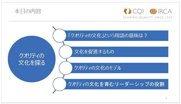 ISO 9001の新しい版には品質文化についての要求事項が追加されるという情報もありますが、去る9月5日、IRCAジャパンは「クオリティの文化醸成におけるリーダーシップの役割」を開催しました。登録メンバー以外の参加者も含む47名にお集まりいただき、ワークショップ形式で活発な交流、討議が行われました。当日の内容を前編、後編の2回に分けてお届けします。